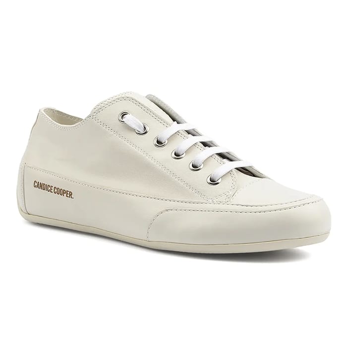 ROCK, the sneakers of the Candice Cooper brand, are designed for fashion lovers who want to combine comfort and versatility. These leather shoes, available in off-white, are perfect for everyday wear, hiking or leisure. Their leather lining ensures optimal softness and flexibility, while the removable leather insole makes maintenance easy. The rubber sole offers a solid base for a comfortable walk. The design details, like the five pairs of eyelets for laces and silver metal rings, add a touch of sophistication. The functional aspect of these sneakers is also highlighted by the presence of a golden text "CANDICE COOPER" on the side, near the back of the heel. -