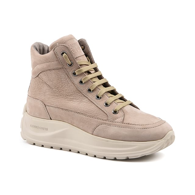 The High-top sneakers Spark Easy Zip by Candice Cooper are designed for everyday wear. These trendy urban shoes feature a nubuck top and upper, while the lining is leather. The insole is also leather and removable. The outsole is made of synthetic material. The heel measures 45 mm. The details of these shoes include a nubuck leather uphill sneaker. The color is ecru. The High-top sneakers Spark Easy Zip are ideal for wearing in mode, daily or half-season. They offer support, style and versatility. -