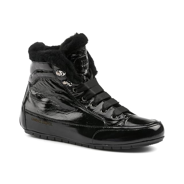 warm high-top patent leather trainers