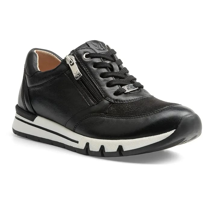 The GINGA sneakers from the Caprice brand combine elegance and comfort for a timeless style. Designed for everyday use, they adapt as well to an urban walk as to moments of relaxation or leisure. Their leather and stretch top, reinforced by a synthetic lining, offers a sophisticated touch while guaranteeing good breathability. The removable leather outsole allows for a custom fit, while the rubber outsole ensures lasting stability. The 30 mm heel provides a perfect balance between support and lightness. Details such as the leather and stretch sneaker, as well as the discreet metal logo on the side closure, underline the neat design of this model. Available in black, the GINGA embody the trendy and versatile spirit, ideal for those looking for shoes that are both stylish and practical. -