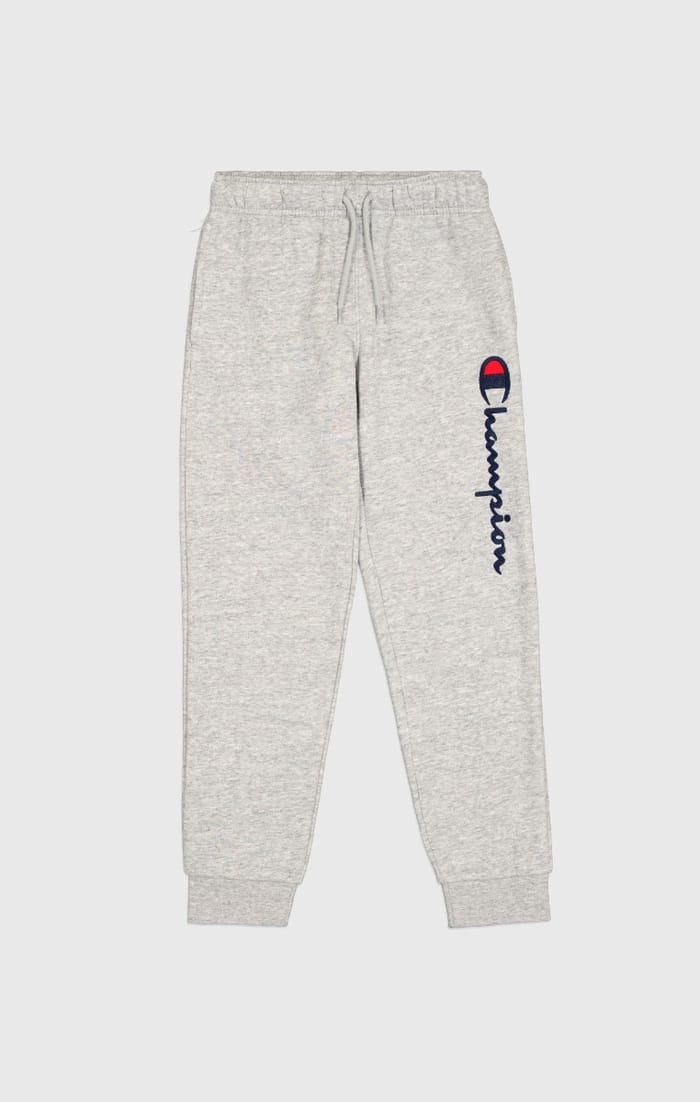 The K's Rib Cuff Pants from Champion are versatile and classic pants designed to meet your daily needs. Made from a blend of 51% cotton and 49% polyester, these pants offer optimal comfort while being durable. Their traditional pants style is suitable for various occasions, ranging from outings to everyday activities. The pants are available in grey, a neutral color that suits all styles. The K's Rib Cuff Pants feature elastic straps on the wrists and ankles for a perfect fit and a comfortable fit. The Champion logo is embroidered on the left leg in dark blue cursive letters, while the brand logo is displayed in red and navy blue above. -