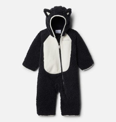 Baby explorers can experience their first winter adventures with this soft Columbia sherpa suit. The hands and feet fold over thereby allowing you to adapt it to your needs and the weather conditions. For added protection from the cold, it features a hood with animal ears on top and binding. ● Fold-over hands and feet ● Binding at hood ● Animal ears at hood ● 100.0% Polyester Sherpa Pile -