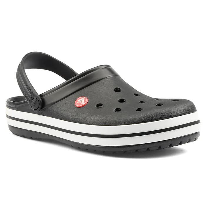 The Crocs Crocband are mules style shoes designed for everyday use. These comfortable shoes are made with synthetic materials for the insole, sole, lining and top. Their casual design is ideal for outings, relaxing activities or summer days. The Crocband offer exceptional lightness and comfort, making them perfect for everyday use. Their sole is equipped with multiple ventilation holes to ensure optimal airing. An adjustable strap at the back allows to ensure a secure attachment. The Crocs logo in the shape of a red circle is visible near the heel area. The Crocs Crocband are available in black, a simple and elegant color that suits all styles. -