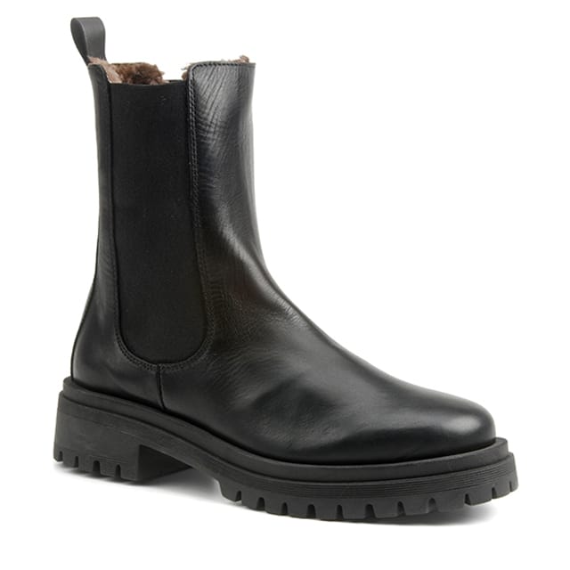 The boots Bratuis of the brand Crown are warm boots designed for general and everyday use. They are elegant and versatile, perfect for a chic look. The ankle boots are made of leather, with a sheepskin lining for exceptional softness and comfort. The insole is also made of sheepskin, providing a feeling of warmth and softness to the foot. The outsole is made of synthetic, offering durability and resistance to wear. The Bratuis ankle boots feature a 45 mm heel, giving them an elegant and sophisticated look. The details of the ankle boot, such as the sheep lining and synthetic sole, contribute to its durability and comfort. The Bratuis ankle boots are available in black, a chic and elegant color that suits any look. -