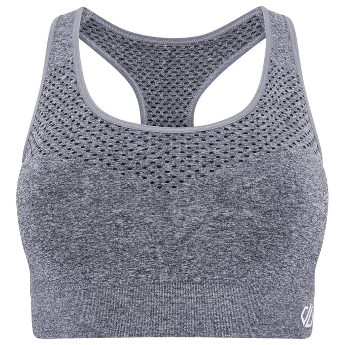 The W's DONT SWEAT IT BRA sports bra from the Dare 2 b brand is designed for intense physical activity. This bra is made of 60% recycled polyamide, 35% polyamide and 5% elastane, offering a reinforced support while being breathable and comfortable. The design of this bra includes a mesh upper for optimal ventilation, which contributes to optimal comfort during physical activities. The two shoulder straps allow for maximum freedom of movement. The bra is available in grey, a neutral and functional color. -