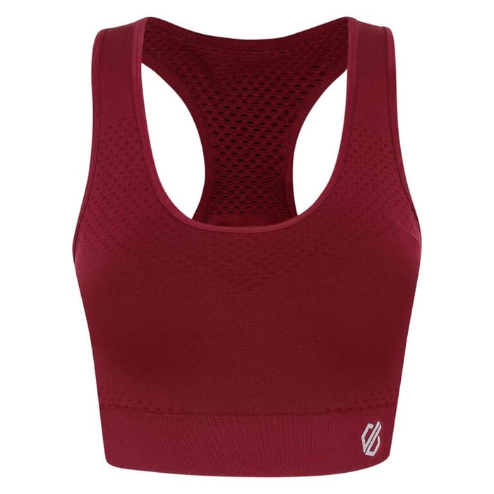 The sports bra W's Dont Sweat It of the brand Dare 2 b is designed for women who practice intense physical activities. This bra is made of 60% recycled polyamide, 35% polyamide and 5% elastane, which gives it a great resistance and exceptional softness. The bra has a medium impact support structure, making it ideal for intense workouts and competitions. The burgundy color is an elegant and sporty option that will perfectly suit your physical activities. The W's Dont Sweat It bra is designed to offer enhanced support while remaining breathable and comfortable. The adjustable straps and seamless design ensure a perfect fit and total freedom of movement. This bra is an ideal choice for women who practice sports, training or competition, as it offers constant protection and support while remaining lightweight and breathable. -