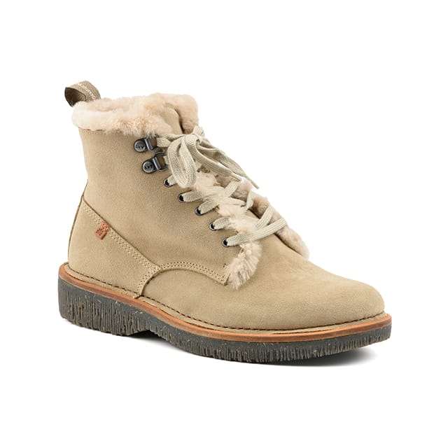 The Volcano ankle boots from El Naturalista are Warm booties style shoes designed for general and everyday use. They are elegant and versatile, offering optimal comfort throughout the day. Volcano ankle boots are made of vegetable velvet leather, a high-quality material that guarantees exceptional durability. Their wool lining ensures extra warmth and softness. The leather insoles are removable, thus facilitating the maintenance of the shoes. Gum outsoles offer solid protection and good stability. The heels measure 35 mm, making them ideal for everyday use. Details of the design include metal buckles for laces, laces themselves being absent, and leather buckles to facilitate the fit of the ankle boots. The Volcano ankle boots are available in a single color, ecru, which gives them a chic and elegant appearance. -