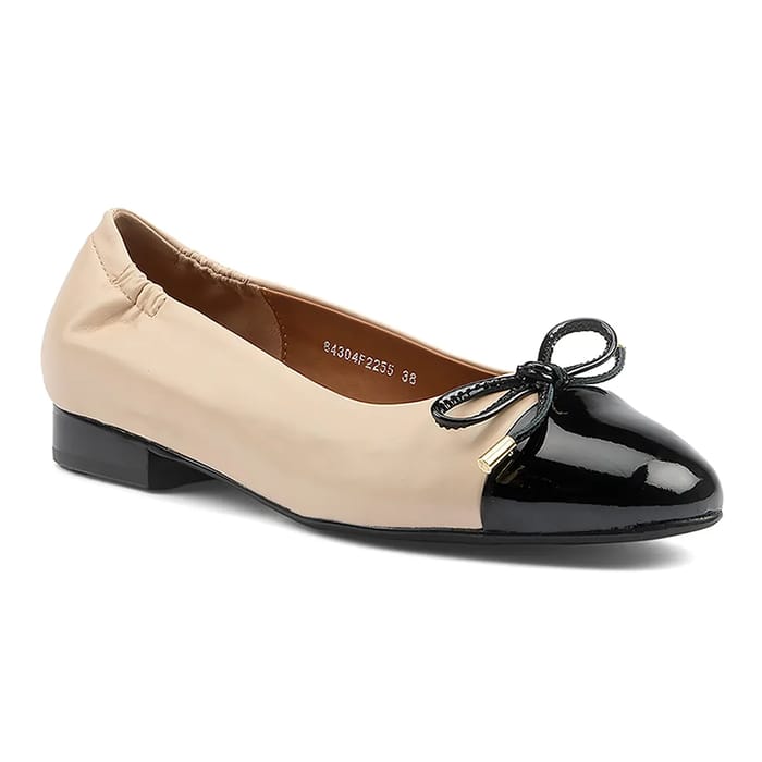 The ARIANNA ballet flats from the brand Everybody are a perfect choice for work days or casual outings. These casual and chic shoes are designed to offer unparalleled comfort and versatility. The top and upper are made of leather and patent leather, while the lining and insole are made of leather. The outsole is made of synthetic material. The heel measures 15 mm, offering optimal lightness and flexibility. The ARIANNA flats are available in beige, a neutral and elegant color that suits all occasions. Their two-tone design, with the heel and shiny black patent leather buckle, adds an element of style and sophistication. A gold metal detail on the front, near the buckle, adds a touch of class. The ARIANNA ballet flats are an ideal choice for women who are looking for a comfortable and versatile shoe for their daily activities. -