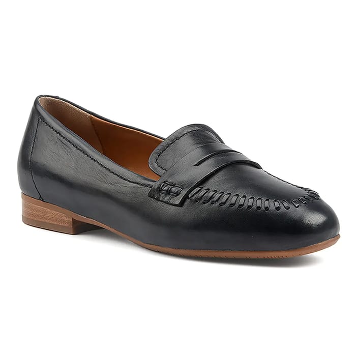 The ROSINA loafers of the brand Everybody are luxury shoes designed for formal occasions. Made of high-quality leather, these loafers feature a classic style with a touch of sophistication. Their top and lining are both made of leather, offering optimal comfort while preserving their elegance. The leather insoles provide extra softness, while the rubber outsoles offer a solid base. The heels measure 15 mm, allowing them to find a perfect balance between elegance and practicality. The details of these loafers, such as the decorative stitching and neat finishes, demonstrate exceptional refinement. The navy blue color is a touch of sophistication that makes them perfect for formal occasions, such as evenings or events. The ROSINA loafers are a great option for those looking for a chic and elegant style for their professional or social occasions. -