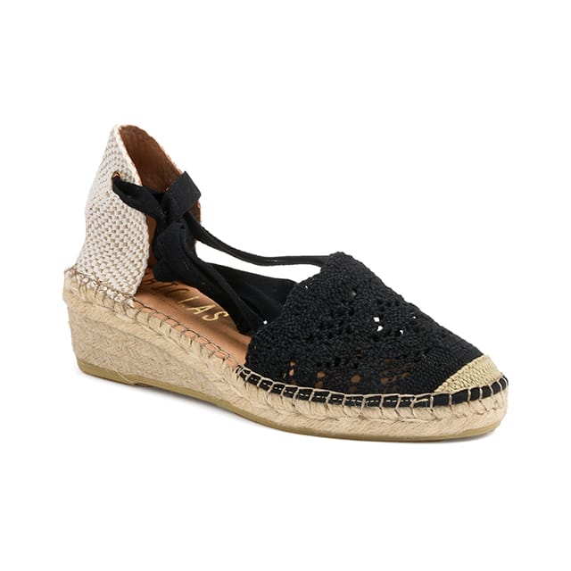 The sandals Fabiolas 601106 are fashionable and feminine espadrilles designed for evenings and summer outings. These stylish shoes feature a synthetic sole and textile insole, ensuring optimal comfort. The top and upper are textile, while the lining is leather, providing a perfect combination of style and comfort. The 601106 sandals feature a 50 mm wedge heel textile sneaker, making them ideal for summer outings. Their elegant design, with a heel tab and lace-up detail, adds a touch of sophistication to any look. The Fabiolas 601106 sandals are available in black, a chic and elegant color that perfectly suits the current feminine fashion. -