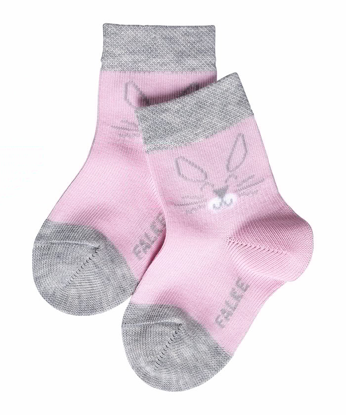 Discover the K's Family city socks from the brand Falke. These elegant and classic socks are designed to accompany your office days, your evenings or your everyday moments. The socks are adorned with a charming illustration of rabbit with long ears, eyebrows and eyes, on a pink background. The logo of the brand "FALKE" is visible on the side of each sock. The socks feature widened sleeves for optimal comfort, as well as a heel and foot area reinforced in gray fabric for added durability. The K's Family socks are also designed to offer breathability and finesse for a comfortable fit. -