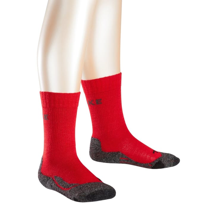 The trekking socks K's TK2 of the brand Falke offer exceptional comfort and durability for outdoor activities. Designed for hikers and sportsmen, these socks feature a wool and synthetic texture for optimal breathability. Their upper and upper are designed to offer protection and support while keeping feet fresh and healthy. The black reinforcement areas on the heel and toe of the socks guarantee superior durability. The K's TK2 socks are available in red, a vibrant color that makes them ideal for sports activities. -