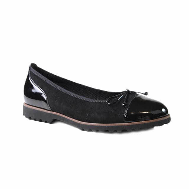 Discover the Gabor ballet flats, ideal for everyday wear, work or casual outings. These comfortable and versatile shoes are designed to meet your needs. Their soft and supple velvet leather ensures optimal comfort, while their flexible synthetic sole offers exceptional lightness. Details of the shoe include a leather insole, textile lining and a 20 mm heel. The Gabor ballet flats are available in black, a chic and elegant color that will suit any occasion. Their casual, chic design makes them perfect for a day at the office or an outing with friends. The Gabor shoes stand out for their comfort, flexibility and contemporary style. -