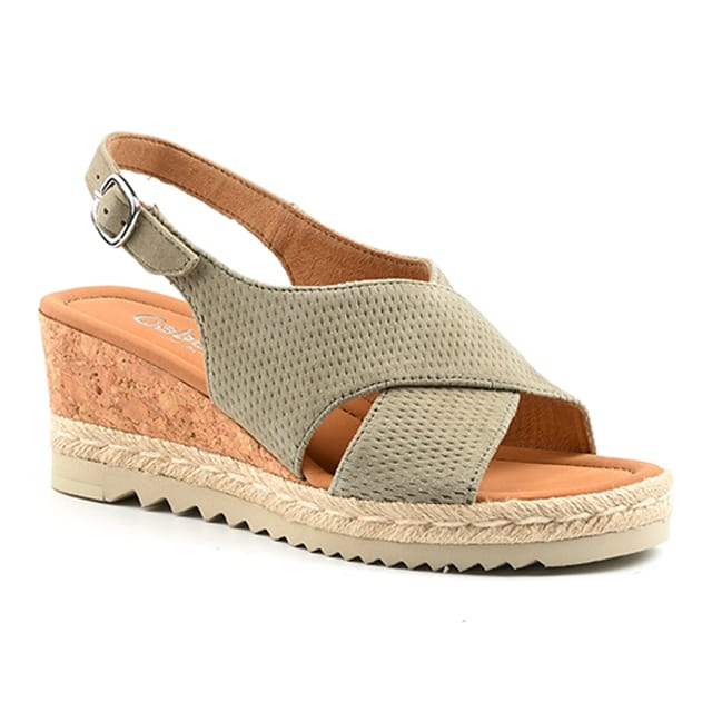 The sandals Tunis G of the brand Gabor are comfortable and elegant shoes designed for women. These wedge sandals feature a 65 mm rubber heel, providing optimal stability and safety. The top and upper are made of suede, while the lining is leather. The insole is made of textile, providing extra comfort. The green color of these sandals makes them perfect for summer outings or evenings. The Gabor Tunis G sandals combine style and comfort, with an elegant design and attention to quality materials. The heel velvet leather and rubber sole provide optimal stability and safety, while the leather lining and textile insole provide extra comfort. The Tunis G sandals are a great option for women looking for comfortable and elegant shoes for summer outings or evenings. -