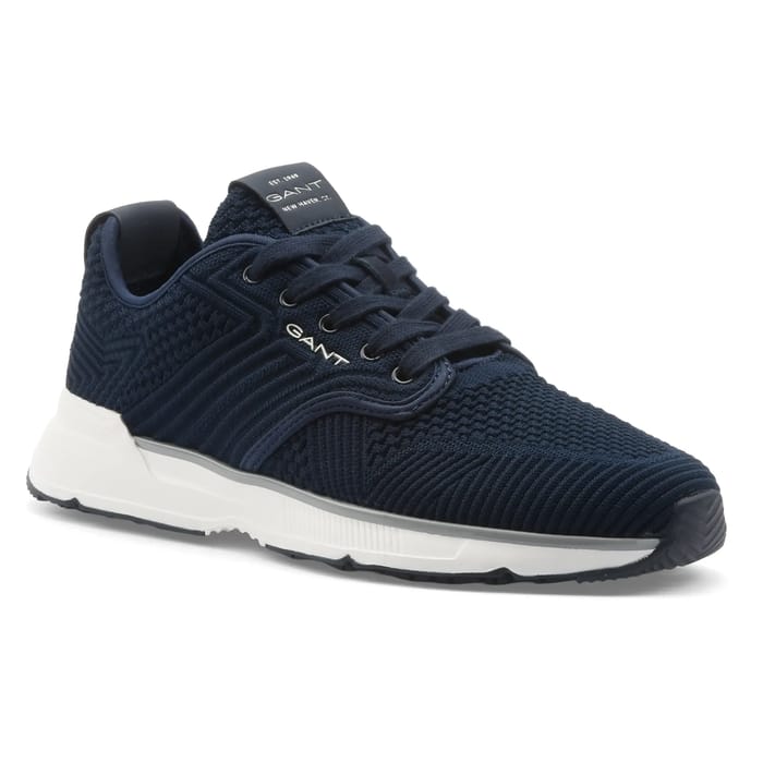 The Beeker Gant is a lace-up shoe with a timeless and versatile style, ideal for everyday use, whether in the office or for outings. Designed to combine comfort and durability, this sneaker stands out for its breathable textile top, perfect for prolonged wear without discomfort. The textile lining, equally pleasant, adapts to the shape of the foot for a precise fit and a feeling of softness. The removable textile insole allows for easy replacement for optimal comfort, while the rubber outsole offers good stability and increased wear resistance. Stylistic details, such as textured patterns and dark laces through metal eyelets, reinforce the athletic and elegant aesthetic of this shoe. Available in navy blue, a classic and timeless hue, the Beeker fits perfectly into any outfit, from the most casual to the most dressed. A smart choice for those looking for a balance between style and everyday convenience. -