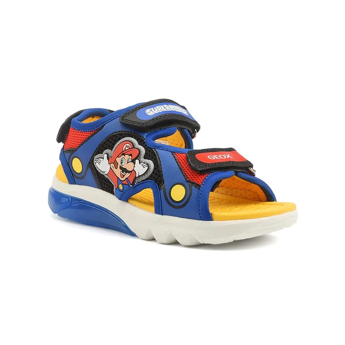 The CIBERDRON sandals from Geox are designed for optimal comfort and lightness. These flat sandals are made of synthetic and textile, with a textile lining for a comfortable feel. The synthetic insole ensures protection and support for the feet. The rubber sole offers cushioning and flexibility for everyday wear. The CIBERDRON sandals are available in several multicolored colors, suitable for a range of casual and summer products. They are ideal for beaches, holidays and sunny days. Kids will love the CIBERDRON sandals, which feature a character from the Mario franchise, with blue and red stripes set by Velcro. The yellow insole and adorned bands of "SUPER" and "GEOX" add a touch of fun and personality. The white cushioning elements on the sole ensure optimal comfort for the feet. The CIBERDRON sandals from Geox combine fashion, comfort and innovation to offer a unique and attractive product. -