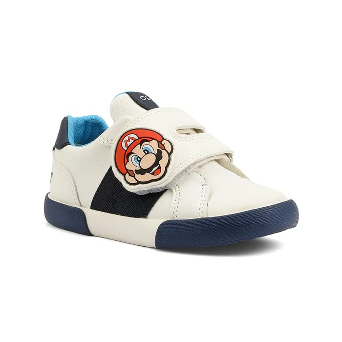 The Gisli Ankle Boots from Geox are designed for small explorers. These Velcro ankle boots are elegant and versatile, perfect for school days or family outings. The synthetic and textile top is soft and breathable, while the textile lining ensures extra softness. Removable leather insoles offer optimal comfort, as do impact-absorbing rubber outsoles. The details, like the sneaker first steps, add a touch of personality. The Gisli ankle boots are available in white, with blue accents on the heel and sole, and an embroidered Mario patch on one of the Velcro bands. The black canvas fabric around the ankle ensures optimal ventilation. The Geox Gisli ankle boots offer a perfect blend of comfort, style and durability, making them ideal for little explorers who love to explore and play. -