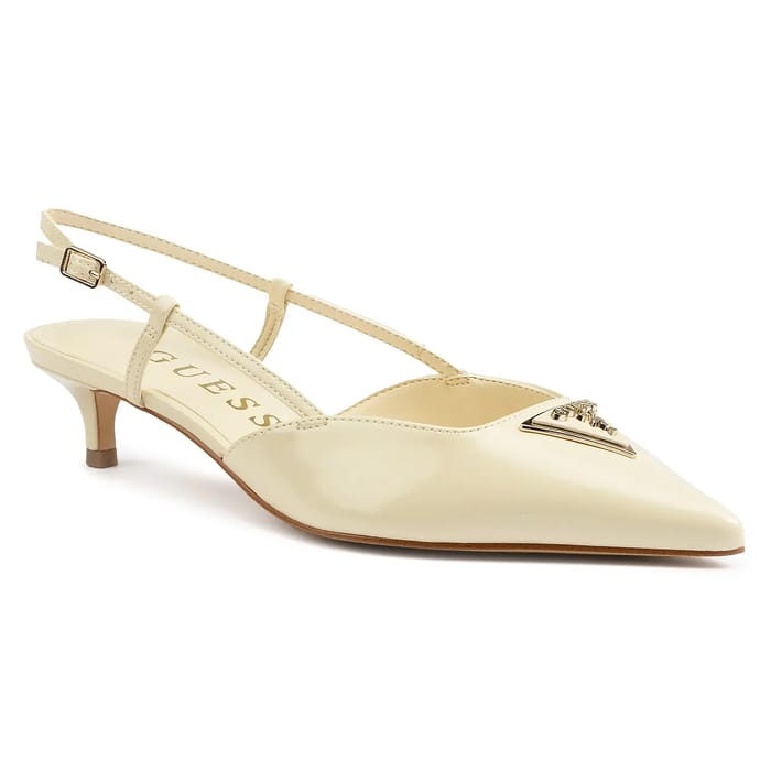 The JESSON2 from the Guess brand are Slingbacks style shoes that combine elegance and refinement. Their synthetic patent top is lined with a synthetic lining for optimal durability. The insoles and outsoles are also made of synthetic, providing a feeling of comfort and solid protection. The heels measure 40 mm, which gives them a chic and elegant look. The details of these shoes include a patent leather sling that adds a touch of sophistication. The ecru color is ideal for evenings, events or even for everyday use in the office. The JESSON2 from Guess are a perfect choice for those looking for stylish style and elegant fashion. -