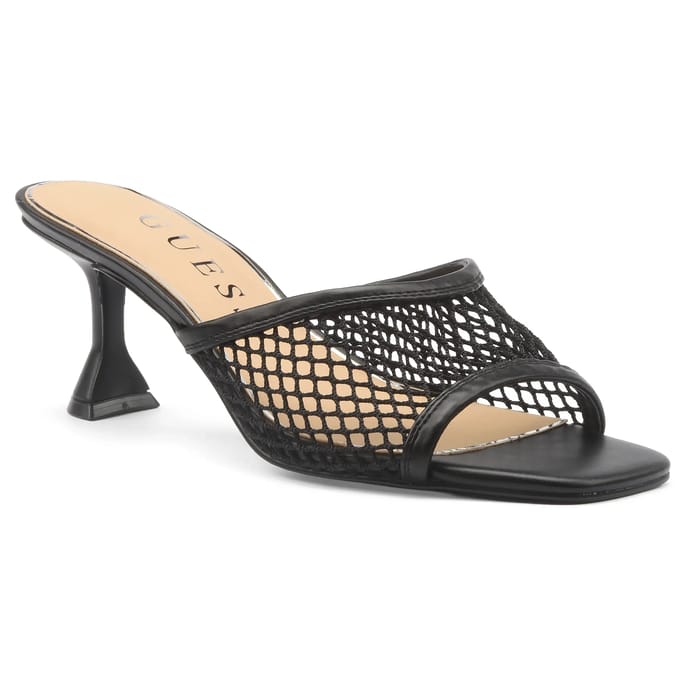 These KEBBA mules from the Guess brand combine elegance and comfort for various occasions, from everyday life to summer outings. Designed in synthetic, they perfectly fit the shape of the foot while remaining light, ideal for prolonged relaxation or a stroll around the city. Their leather insole, marked by the GUESS logo, brings a soft touch and a feeling of softness with every step. The 70 mm heel, both thick and stable, offers optimal support without sacrificing style, while the rubber sole guarantees good grip. Their minimalist design and timeless black color make it a timeless staple, perfect for sublimating a casual or dressy outfit. The synthetic lining ensures optimal breathability, ideal for hot days. -