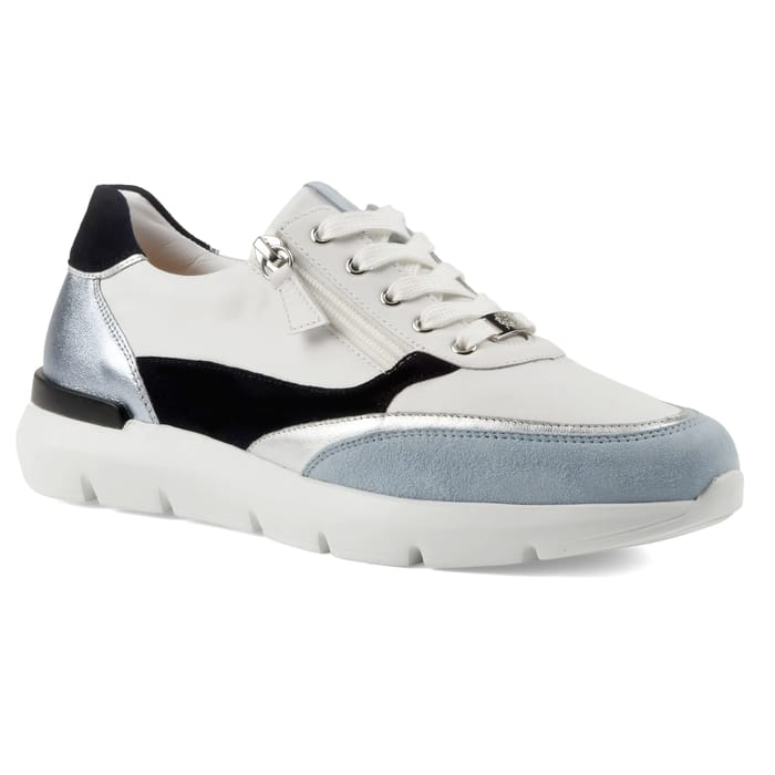The BORDEA H Hassia sneakers combine elegance and versatility for a timeless urban style. Designed with a leather and suede top, they combine softness and strength, while the leather and textile lining ensures optimal comfort throughout the day. The removable leather insole allows for a custom fit, and the thick synthetic outsole offers enhanced support for smooth walking, whether in town or during your leisure time. The bold design plays on multi-colored color contrasts, with silver metallic accents on the sides, a black velvet along the front panel and a light blue velvet with toe cap. The side zipper and white laces enhance the modern and practical appearance, ideal for everyday use. Perfect for fashion lovers or those looking for versatile comfort, these BORDEA H Hassia sneakers embody the sporty and elegant look. -