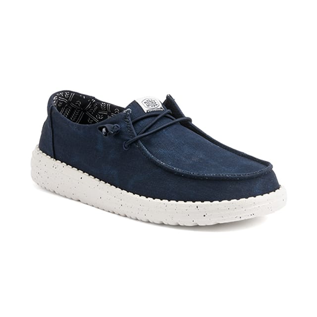 The Low sneakers Wendy Canvas of the brand Hey dude are an ideal choice for summer outings. These casual shoes, designed for lightweight wear, are perfect for leisure and outdoor activities. Their canvas top and upper, as well as their textile lining, guarantee optimal comfort. Removable textile insoles add a touch of flexibility. Synthetic soles ensure durability and wear resistance. Canvas basketball details add a touch of style. The Low sneakers Wendy Canvas are available in navy blue, a color that adapts perfectly to the summer atmosphere. With their breathability and comfort, these shoes are ideal for summer outings. -