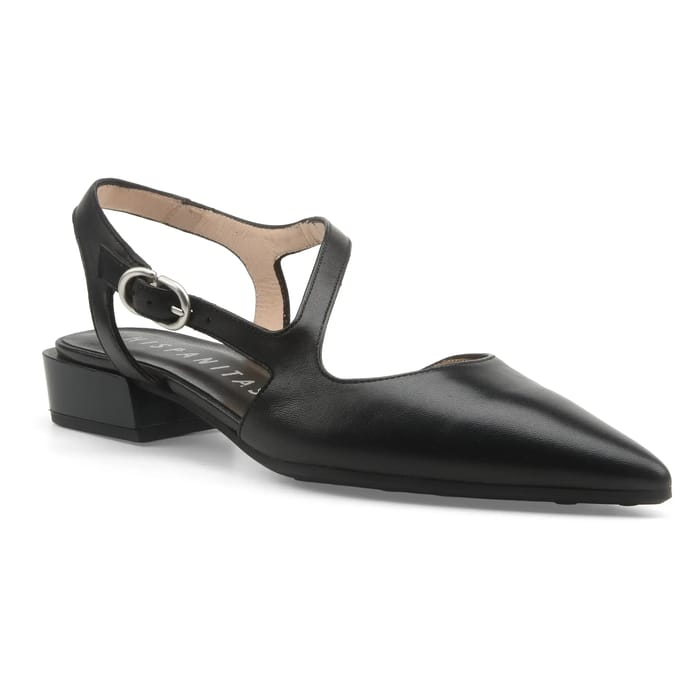 These Lila slingbacks pumps from the Hispanitas brand combine timeless elegance with discreet refinement. Designed in soft leather and neat, they perfectly fit the shape of the foot while offering optimal comfort thanks to a lining and an insole also leather. The 30 mm heel, both stable and elegant, enhances the silhouette without sacrificing comfort for long runs. The signature detail of this pair lies in its leather sling, reinforcing both the style and fit of the shoe. The black color, timeless and versatile, adapts to any occasion, whether it is a chic evening, a business event or a day in the office. Inside, a subtle touch with the letters "HISPANI" embroidered in white on the insole recalls the identity of the brand while adding a note of originality. Perfectly integrated into the chic and elegant range of Hispanitas, these pumps embody the combination of sophistication and practicality, ideal for those looking for shoes that are both stylish and suitable for refined everyday use. -
