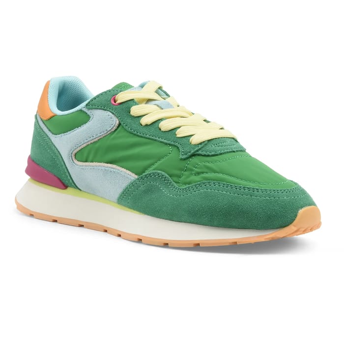 These CITY sneakers from the Hoff brand combine bold style with everyday comfort for a resolutely trendy look. Designed in a harmonious blend of velvet leather and textile, they perfectly fit the foot while offering a touch of casual elegance. Their multi-coloured colour scheme, combining green, light blue and orange hues, stands out for its dynamism, while textile suede details and fabric lining enhance their premium look. The removable textile insole guarantees a customizable fit and optimal ventilation, ideal for everyday trips or leisure. The 15 mm heel ensures a natural and comfortable fit, while the synthetic sole provides lasting stability. Perfect for fashion lovers looking for versatility and originality, these sneakers embody the retro spirit revisited with a contemporary twist. -