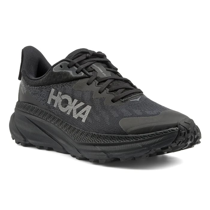 Here is the product description for the catalog: The Hoka Challenger are running shoes designed for running, training and marathons. They offer excellent comfort and exceptional cushioning thanks to their Durabrasion rubber sole. Their 5 mm heel guarantees a solid grip on any terrain. The Hoka Challenger also comes with a removable textile insole for a better fit to your foot. Their top and upper made of 70% recycled polyester mesh are waterproof thanks to Gore-Tex technology. The lining in 70% recycled polyester mesh ensures optimal ventilation. The Hoka Challenger is available in black, a functional and sporty color. They are ideal for running, training and marathons, as well as for trail running activities. -