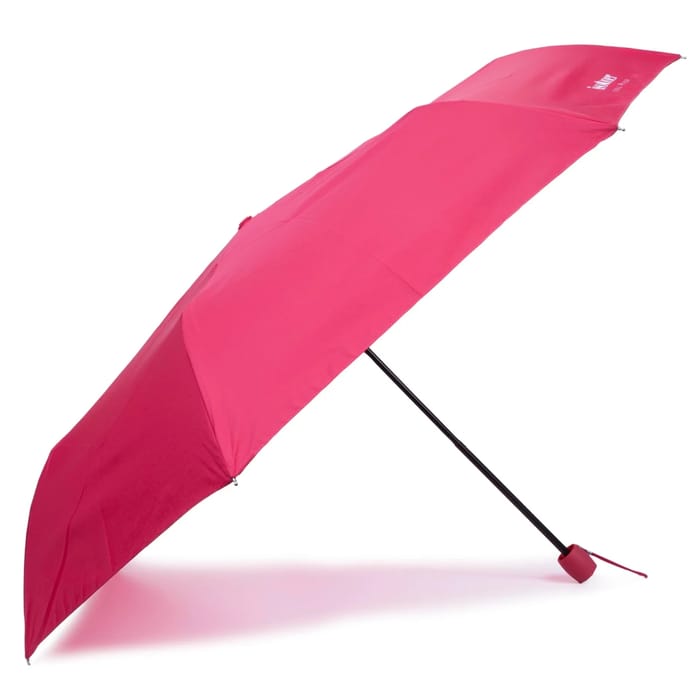 Umbrella Isotoner 09513: a practical accessory for everyday trips. This umbrella is designed to offer effective protection from rain and sun, while being lightweight and easy to handle. Its robust structure, with fabric panels joined together, ensures optimal durability. The black handle and stem contrast with the bright pink hue of the umbrella, which unfolds easily by hand. A discreet logo is visible at the upper right corner of the umbrella, while the metal ends at the base ensure solid stability when in use. This umbrella is ideal for users looking for a functional and portable accessory for their daily commute. -