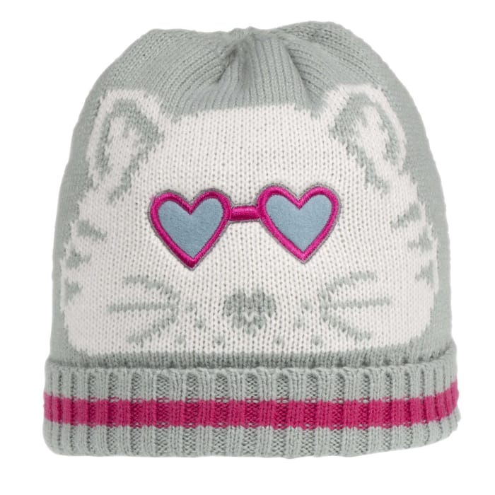 The hat mesh Glasses of the brand Isotoner is a functional and casual fashion accessory for winter and outdoor activities. Made of 100% acrylic, this cap is lined with a fleece to maintain heat. The top and upper are made of acrylic, offering strength and durability. The beanie features a fetish design with a cat face and heart-shaped glasses, whose glasses feature pink contours with blue lenses. A wide pink ribbon is also visible near the base of the cap. The main color of the cap is a bright green, while the details of the face and glasses are white and gray. This beanie is perfect for cold days and outdoor outings, offering warmth, protection and style at the same time. -