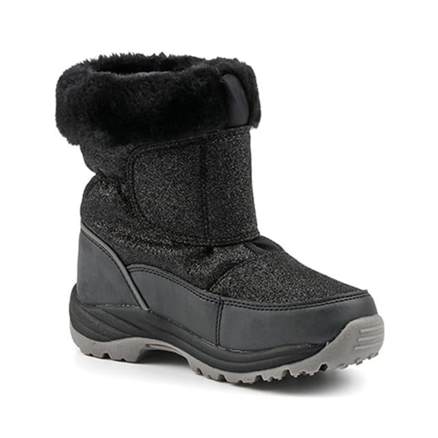 The Jumpsnow WPF snow boots from the brand Kickers are designed for winter outdoor activities. They feature a sturdy rubber sole with deep heels for good stability on snow and ice. The top and upper are made of textile and sequins, offering a chic appearance and water resistance. The lining and insole are made of warm textile to keep feet warm in cold conditions. The Jumpsnow WPF boots are designed to be functional and sturdy, with optimal waterproofing and warmth for winter activities. They are available in black, a color that is perfectly suited to winter conditions. -
