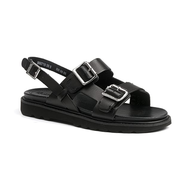 The NEOSUMMER sandals from the Kickers brand are designed for a casual and summery style. Made of leather, they offer optimal comfort and breathability. Their leather insole guarantees exceptional softness and flexibility. The NEOSUMMER sandals feature a sturdy synthetic sole and a 30 mm heel for guaranteed protection and stability. The metallised silver fittings and clasps ensure a precise fit and secure closure. The NEOSUMMER sandals are ideal for beach, holiday or everyday occasions. They offer an elegant and sophisticated look thanks to their sober design and black color. -