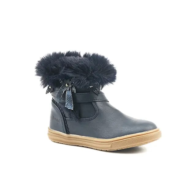 The Inilana of the brand Kouki are low heel winter boots, designed for cold days. Their navy leather upper is adorned with neat details, such as artificial fur bands and small knots, as well as metallic inlays that add an elegant touch. The warm textile lining ensures optimal comfort, while the leather insole ensures extra softness. The rubber outsole offers solid protection and good stability. The Inilana are ideal for people looking for stylish styling and effective protection from the cold. -