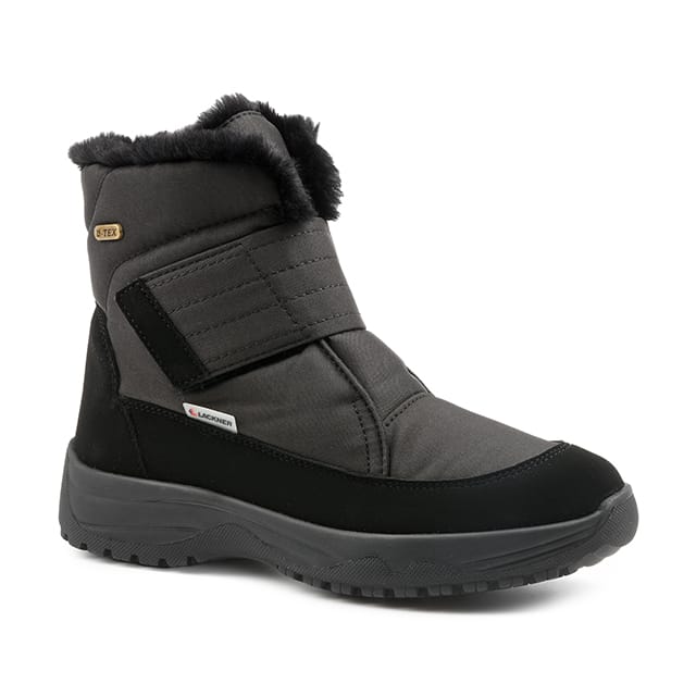 Vera, the warm ankle boots from Lackner, are designed to offer optimal comfort and protection in cold conditions. Their top and sole are made of synthetic, while their lining is composed of warm textile and a textile membrane to maintain heat. The insole is also made of warm, removable textile for a better fit to the foot. The Vera ankle boots are equipped with synthetic soles with studs for better stability on slippery surfaces. Their versatile and comfortable design makes them ideal for general and everyday use. Details of the design, such as warm fabric sections and "LACONIER" brand labels along the lower leg, suggest attention to functionality in cold weather conditions. The Vera ankle boots are available in black, a chic color and suitable for the winter. -