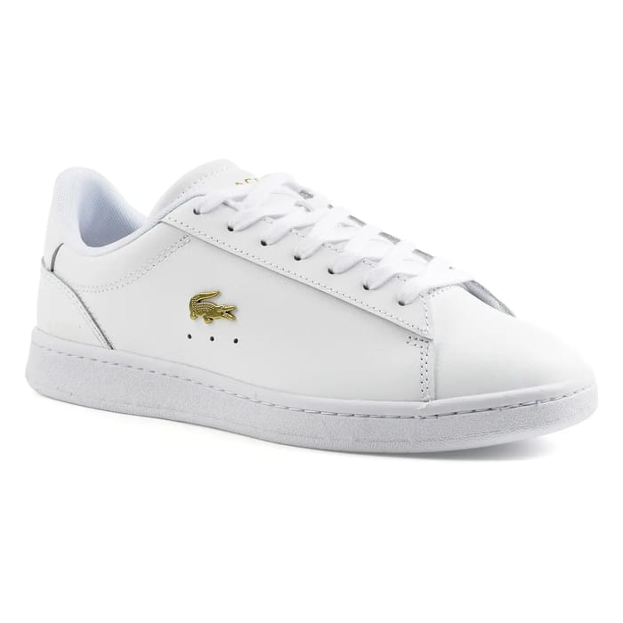 The WOMEN'S CARNABY SET by Lacoste combines elegance and comfort in a sleek white leather sneaker. This model with low stem fits in the current trend with a fashion aesthetic and a versatile silhouette suitable for all everyday outfits. The synthetic sole offers discreet stability, while the textile lining and padded insole ensure lasting comfort in all circumstances. Careful details like the discreet stitching and the gold logo on the side, featuring a stylized alligator above three black dots, add a distinctive identity touch. Ideal for walking or leisure, this model embodies a timeless elegance with a contemporary twist. -