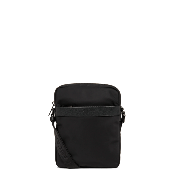 Shoulder bag Lancaster 304-07, a chic and modern accessory for outings, office and travel. Designed for practical use, this bag features a 100% polyester lining and a nylon and leather upper, providing a combination of strength and style. Its compact size, measuring 17 x 22 x 5 cm, allows it to be easily transported in pockets or on the back. The adjustable shoulder strap, attached to the sides of the bag with clasps and metal rings, fits your size for comfortable use. The bag features a zipped compartment at the front for a secure closure and a nylon and leather reporter that adds an element of style. The black color is ideal for everyday use, as it is discreet and elegant. This bag is designed to meet your mobility and safety needs, while offering a minimalist and chic design. -