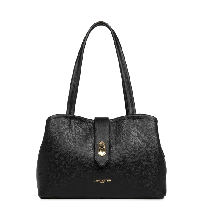 Handbag Lancaster 470-68 TOP DOUBLE: an elegant and practical fashion bag for outings, leisure and shopping. Crafted from grained leather, this handbag features two sturdy handles for easy and comfortable operation. The front closure, adorned with a gold metal clasp in the shape of an inverse "V", guarantees safety and perfect closure. The logo "LANCASTER PARIS" is engraved in capital letters near the bottom of the front side, adding a touch of sophistication to this fashion bag. The bag also has spacious storage space for storing your belongings, making it an indispensable accessory for outings and leisure. -