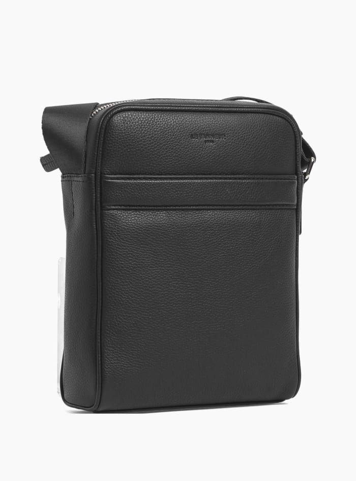Bag M's Charles, made by the brand Le tanneur, is an elegant and functional bag. It is made of black leather with a unique texture, characterized by multiple horizontal stitching lines on the top for added design detail. The bag features a zippered clasp on the top and an adjustable cord attached to each side via metal hardware. A small engraved logo is visible near the upper center of the bag. A small detachable fabric label is hung at one end inside the opening. This bag is perfect for outings, trips, work or everyday activities, due to its style and practicality. It offers ample storage space for documents and valuables, while being easy to wear thanks to its adjustable cord. -