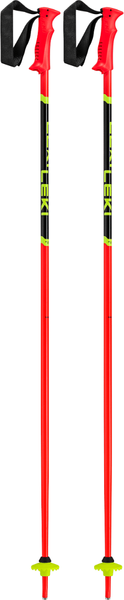 The ski poles K's RACING KIDS of the brand Leki combine style and functionality for young skiers. Designed in a dynamic aesthetic with a bright red finish and black and neon green accents, these sticks are perfect for winter sports. Featuring an ergonomic handle with adjustable flange, they offer optimal comfort in any situation. The handle has an adjustment system to customize the length according to the morphology of the child. Knife-shaped gripper at the tip ensures optimal stability on soft snow. These poles meet performance and protection requirements, ideal for skiing and snowboarding. Their technical design and functional appearance make them a reliable equipment for young practitioners. -