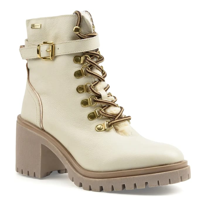 VALENTINA, a warm leather ankle boot from the brand Les Tropeziennes, is a chic and versatile proposal for autumn and winter. Designed for general and everyday use, this ankle boot features a 70 mm heel and a synthetic sole for optimal durability. The top and upper are made of leather, while the lining is made of warm textile for unparalleled comfort. The insole is also made of leather for a feeling of comfort and quality. The VALENTINA is available in off-white, a color that is perfect for autumn and winter. This ankle boot is a comfortable and versatile proposition that meets the expectations of women who are looking for a chic style and easy to wear for autumn and winter. -