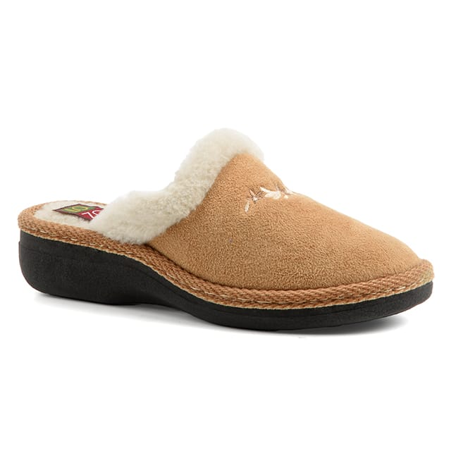 warm textile slipper with wedge heel