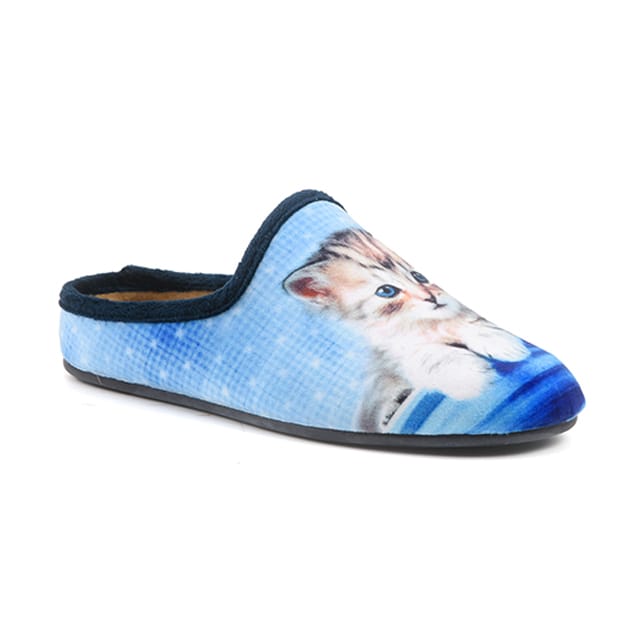Discover the Slippers Cats from the brand Lozoya, ideal for cold and comfortable days at home. These textile slippers offer exceptional softness and flexibility, while guaranteeing optimal warmth for your feet. Their textile top and upper are designed for a comfortable feel, while the textile lining ensures additional insulation. The removable textile insole allows for great flexibility and a perfect fit to your foot. The Slippers Cats are available in a pretty sky blue color, with a print design of an adorable blue-eyed kitten that will add a little joy to your moments of relaxation. The Slippers Cats are perfect for winter days, but they are also ideal for everyday relaxation. -