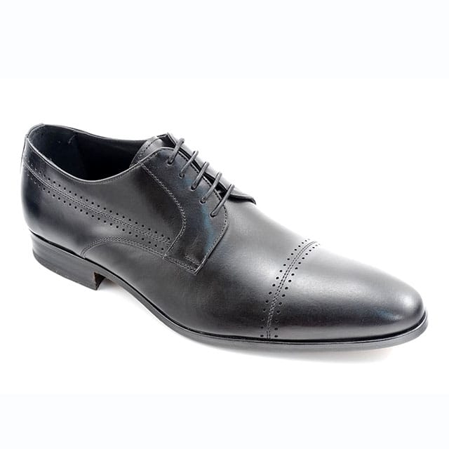 The Derby Leather shoes from the brand Mannori are classic and versatile lace-up shoes. Designed for everyday use, they are ideal for business occasions, outings or moments of relaxation. Their black leather upper and upper offer an elegant and sophisticated look. Decoration details, such as perforations and broguing, add a touch of sophistication. The shoes are equipped with a leather lining and insole, ensuring optimal comfort. Their leather sole ensures durability and solidity. The five lace eyelets allow for an accurate fit, while the low heel provides stability and lightness. The Leather Derby shoes from Mannori are a quintessential choice for men looking for a classic and elegant style. -