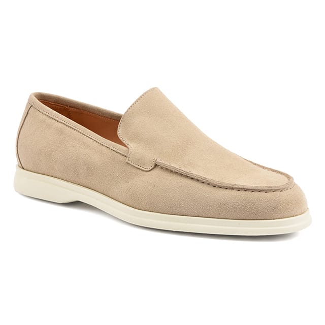 Manovie toscane The Lorenzo Plain: classic beige suede loafers for office and evening wear.