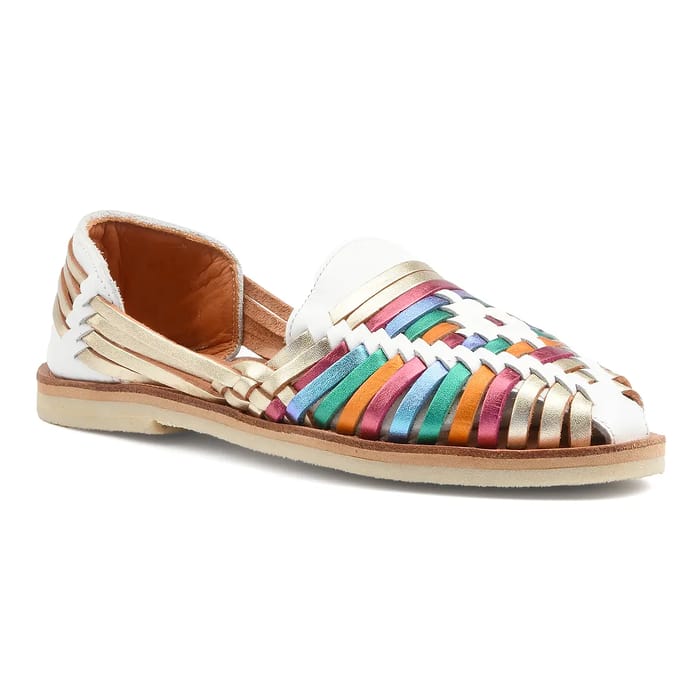 Mapache IBARRA, classic loafers that combine refinement and comfort. These shoes are designed for formal occasions, but also for office days or evenings in the city. Their leather loafer style is characterized by sophisticated details, such as multi-colored leather bands that weave to form a unique and captivating pattern. The leather bands, in different bright colors like pink, blue, green, orange and gold, create a striking visual effect. The upper of the shoes is made of leather, while the insole is also made of leather to offer optimal comfort. The outsole is crepe, which adds a touch of lightness and flexibility. The heel measures 10 mm, which is enough to give an elegant look without compromising comfort. The Mapache IBARRA shoes are perfect for occasions when you want to present yourself with style and elegance, while remaining comfortable and comfortable. -