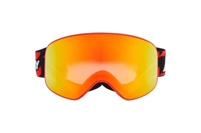The K's FLYTE JR REVO from the Mckinley brand is a ski equipment designed for young winter sports enthusiasts. This ski mask features a functional and technical design, featuring an orange reflective lens that optimizes visibility in variable light conditions. Its red frame brings a touch of elegance while providing excellent protection. The mount is equipped with a black strap adorned with small patterns in the shape of red circles, providing optimal comfort and a stable fastening. A discreet white inscription is visible on the left side of the strap. This mask meets the performance requirements needed for skiing and snowboarding, providing effective insulation against bad weather and strong winds. -