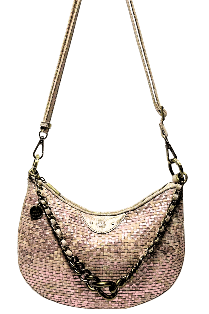 Shoulder bag NELIA W of the brand Mila louise, designed in a chic and modern style. This braided leather bag features a polyester lining for optimal durability. The size of the bag is 28 x 17 x 3 cm, ideal for outings, office or trips. The bag is equipped with a leather shoulder strap with metal fasteners for optimal ergonomics and safety. The pink color is an elegant and attractive choice. The bag also features a Mila louise brand logo embossed in a decorative, adding a touch of sophistication. -