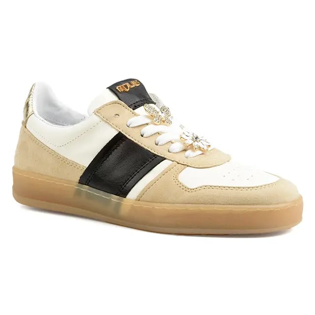 The Genova sneakers from the brand Mjus are designed for fashion lovers who want an elegant style for their daily outings. These shoes feature a leather and suede upper and upper, providing a mix of comfort and style. The lining is made of leather and textile, while the insole is leather and removable. The outsole is made of synthetic material. The heels measure 20 mm. Details of these shoes include a leather and velvet leather sneaker, adding a touch of sophistication. The main color is white, but touches of beige and black are also present. The Genova shoes are ideal for daily activities, walks or leisure. They combine fashion, comfort and versatility, making them a perfect choice for those who want to stay fashionable while being comfortable. -