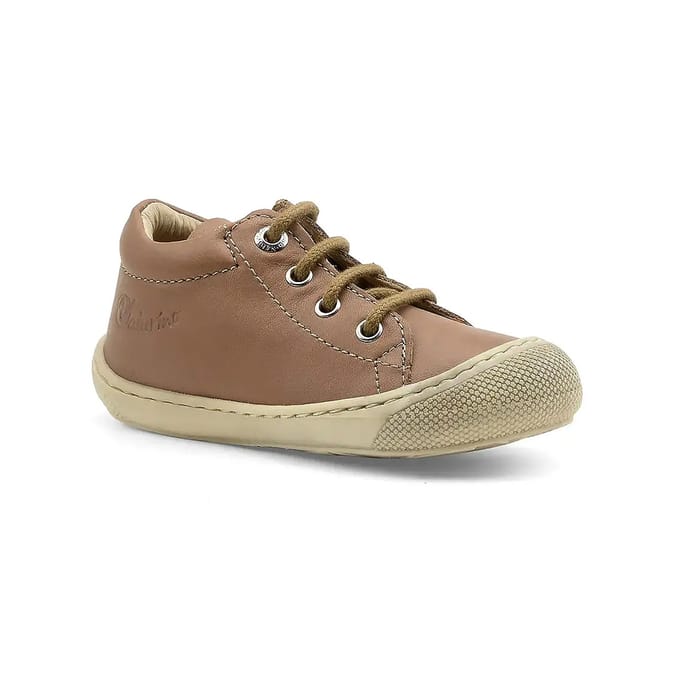 Ankle boot Naturino Cocoon designed for your child's first steps, combining softness and robustness. Made of quality leather, this ankle boot offers optimal comfort thanks to its soft leather lining and removable insole, also in leather. The durable rubber sole ensures good stability, ideal for early learning to walk. Careful details, such as reinforced seams and metal eyelets for laces, enhance the durability of the model. Available in taupe color, this ankle boot fits perfectly into a style that is both elegant and practical. Perfect for small daily adventures, it combines aesthetics and functionality to accompany your child's first steps with confidence. -