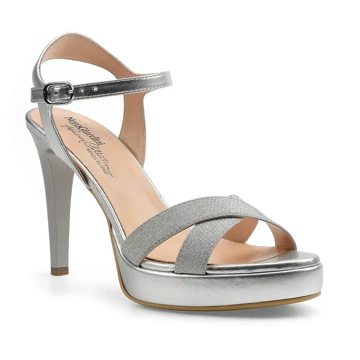 These Battis heel sandals from the Nero Giardini brand combine elegance and sophistication to enhance every outfit. Designed in a Made in Italy spirit, they stand out for their leather uppers enhanced by silver sequins, offering a discreet and refined shine. The leather lining and insole ensure optimal comfort, while the rubber outsole ensures lasting stability. With a heel of 110 mm, these sandals bring a touch of boldness while remaining suitable for evenings, offices or ceremonies. Their chic design and neat finish make them a must-have for those seeking Italian excellence. -